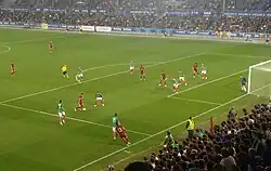 Modern football was introduced to the Basque Country in the late 19th century by a combination of mostly British immigrant workers, visiting sailors and Spanish students returning from Britain.[1] In the late 1870s, various English workers scattered throughout the peninsula began to establish informal groups that were dedicated to different recreational practices, especially cricket and football, particularly in Spanish ports, such as the ones in Vigo, Andalusia, (Huelva and Seville) and Bilbao, who were the regions that most felt this phenomenon.[1] The latter was a leading port of an important industrial area with iron mines and shipyards nearby. Likewise, it was the British employees of the Nervión Shipyards, located in Sestao (Vizcaya), who organized and played the first known football match in the region, which was held on 4 April 1890, between the Machinery Department (engineers) and the Shipyard Workers, ending in an 8–1 to the former.[2] This group of football pioneers were part of a multi-sports club called Club Atleta, which had been founded in late 1889.[2]