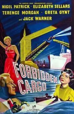 Forbidden Cargo is a 1954 British crime film directed by Harold French[3] and starring Nigel Patrick, Elizabeth Sellars and Jack Warner. It was written by Sydney Box.[4]