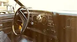 1976 was the last model year for the sixth generation. Some items that were standard in 1975 were moved to the options list. Some items returning to the option list included, AM/FM stereo, front cornering lights, and tinted glass. Additionally the rear windows became stationary. This move was to keep cost down and was also shared by the 1976 Mark IV. The 1976 luxury groups were Creme and Gold ($793), Lipstick ($546), and Bordeaux ($700). New options included driver's lighted vanity mirror ($43), power lumbar drivers seat ($86), AM/FM stereo search radio ($298), and AM/FM stereo radio with Quadra sonic 8-track tape player ($382). An auto dimmer was added to the autolamp option. Base price was $7,790 ($43,045 in 2024 dollars[5]) with a total of 52,935 cars produced.[1]