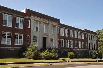The former Sanford High School, also known as West Sanford Middle School, is a historic high school building located at Sanford, Lee County, North Carolina. It was designed by the firm of Wilson, Berryman & Kennedy and built in 1924–1925. It is a two-story, L-shaped, Classical Revival-style brick building. The front facade features a slightly projecting center pavilion and terminal pavilions with concrete-faced pilasters with enriched capitals. The building houses the Lee County Art and Community Center.[2]