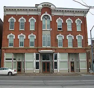 The Forrest Block was constructed in 1875 by John Forrest as a commercial block. Forrest was a capitalist who invested his financial resources in several buildings downtown. This is the location of the homestead where he lived for 33 years before he redeveloped it. It is one of a number of large commercial buildings in Davenport that were designed in an elaborate Italianate style during the decade after the American Civil War.[3] Prominent Davenport architect Frederick G. Clausen designed the building and J.H. Whittaker was the general contractor. The building is designed to have retail businesses on the main floor and professional offices on the upper floors.[4]