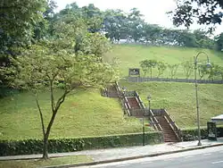 The park overlooks Orchard Road and is set in the heart of the Civic and Cultural District of Singapore, and it now offers a variety of recreational activities as well as historical, educational, entertainment and cultural experiences, and is also used as a place for social events.[26] The park also serves as an important green lung for Singapore's downtown city area. The unique blend of historical relics, lush greenery and expansive lawns has made Fort Canning a hub of cultural and artistic activity. It has been a venue of choice for staging myriad outdoor events and activities like theatre carnivals such as Shakespeare in the Park by SRT, art festivals, starlight cinemas and Ballet Under the Stars performances.[27]WOMAD, Singapore's largest music festival, was a regular feature of the park's calendar of events from 1998 to 2007.[28] The Fort Canning Tunnel passes directly under the hill.[29]