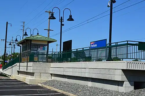 Fortuna station is a station along the SEPTA Lansdale/Doylestown Line. It is located near the corner of North Broad Street and Cowpath Road (Route 463) in Hatfield Township, Pennsylvania, United States. Cowpath Road was originally an actual cow path. In FY 2013, Fortuna station had a weekday average of 60 boardings and 103 alightings.[2] As part of an out of court settlement with the owners of a cow killed by a Reading Railroad train at the crossing, the station was named Fortuna in honor of the deceased cow.[3]