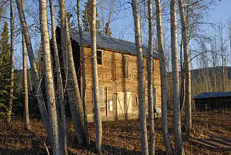 In 1886 Jack McQuesten, Alfred Mayo and Arthur Harper of the Alaska Commercial Company (ACCo) established a post here, after gold was discovered on the Fortymile River. Most of the miners who staked the original claims in the Klondike came from this area. Yukon's first mission school was established here in 1887 by the Anglican Church. That same year, North-West Mounted Police Inspector Charles Constantine established the territory's first police detachment.[1] It is also likely that the Forty Mile farm was the site of the first agriculture in Yukon. Forty Mile was the place where the Discovery Claim was registered, beginning the Klondike Gold Rush.[2] By 1894, Forty Mile boasted two well-equipped stores (ACCo and the North American Transportation and Trading Company), a lending library, billiard room, 10 saloons, two restaurants, a theatre, an opera house, a watchmaker, and numerous distilleries. At its peak the town site's population was about 600. However, after the Klondike Gold Rush ended, the city declined, and today only a handful of buildings remain.[1]