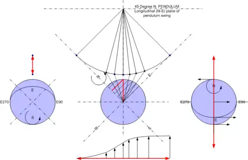 Figure three (b)–Forty-five-degrees north pendulum with latitudinal swing