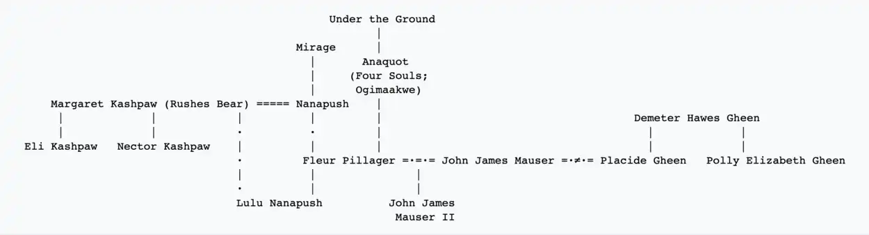 - Fleur Pillager: The main protagonist and an Ojibwe woman. She takes on the name of her late mother, Four Souls, while in pursuit of revenge on the man that stole her land.