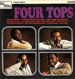 Four Tops is the 1965 self-titled debut studio album by the American vocal group the Four Tops. The album was produced and mostly written by the Motown's main writing/producing team Holland-Dozier-Holland. Four Tops includes the singles "Baby I Need Your Loving" , "Without the One You Love (Life's Not Worth While)", and "Ask the Lonely".