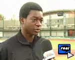 ![]() Frédéric Hanvi giving a TV interview in France after signing his Minor League contract | |