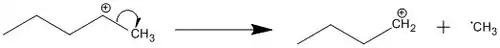 Sigma bond cleavage is most commonly observed in molecules that can produce stable cations, such as saturated alkanes or secondary and tertiary carbocations. This occurs when an alpha electron is removed. The C-C bond elongates and weakens causing fragmentation. Fragmentation at this site produces a charged and a radical fragment.[2]
