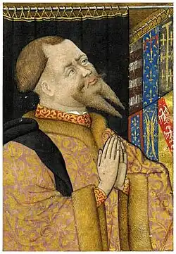 In 1443, Le Ferron was pursuing his career at the royal court as Treasurer of France and advisor to King Charles VII of France.[14] - ^ In 1441, Admiral Prigent de Coëtivy married Marie, Rais' daughter.[15][16] Now the new Baron de Retz, Coëtivy supported several lawsuits to claim his wife's inheritance, in other words, the lands that had belonged to his late father-in-law.[17]