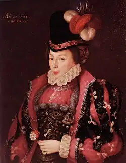 In August 1559, Thomas Willoughby died from 'overheating' while out hunting, leaving no issue, and Francis inherited the family estates.[6] At the age of seventeen, Francis married Elizabeth Littleton of Frankley, Worcestershire. This proved to be a turbulent marriage, and produced only daughters.[7]