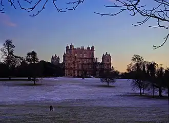 Willoughby developed coal mines on his estate at Wollaton in the 1560s and 1570s. This enabled him to maintain a lordly lifestyle, maintaining a number of gentleman retainers. He employed Robert Smythson, who had previously worked at Longleat to build him a mansion, Wollaton Hall.[8]