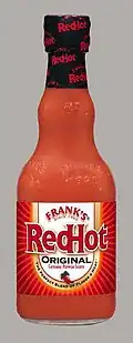 Frank's RedHot is a hot sauce made from a variety of cayenne peppers, produced by McCormick & Company. The Original blend ranks low on the Scoville scale, with 450 SHUs, but the XTRA Hot variety measures 2,000 SHUs.[1][2]