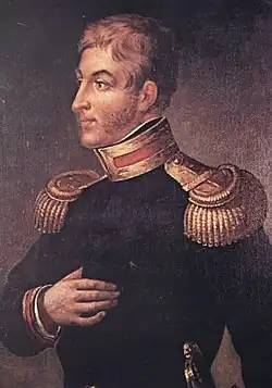 Frank Abney Hastings (Greek: Φραγκίσκος Άστιγξ) (14 February 1794 – 1 June 1828) was a British naval officer and Philhellene.[1][2] Born to a noble British family, he served in the Royal Navy, seeing action at the Battle of Trafalgar and the Battle of New Orleans. In 1819 he was discharged from the Royal Navy, and a few years later would travel to Greece to aid the Greeks in their struggle for independence, where he would take part in multiple battles, most notably the Battle of Itea, during which his ship the Karteria, would become the first steam-powered warship to see combat.[3]