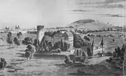 To make room for a new residential district of Aachen, the Frankenberg Construction Company reduced the size of the previously quite large Frankenberg Park that surrounded the castle, and also removed the forecastle and related farmyard.