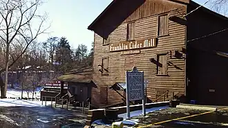Ownership of the Mill changed hands several times during the late 19th and early 20th centuries. In 1914, the mill was sold to James T. Flynn, who installed the first water-powered apple press. Around the turn of the century, the Franklin Grist Mill was flooded and shut down until the property was purchased in 1918 by Robert McKee. McKee stipulated that the cider season would run from August 15 until January 1.[1]