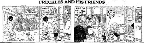 Freckles and his Friends is an American comic strip set in the peaceful small town of Shadyside where young Freckles McGoosey and his friends lived. Although the long-running strip, created by Merrill Blosser, is remembered for its continuing storyline involving a group of teenagers, it originally featured a child at the age of six or seven in gag-a-day situations.[1][2]