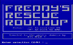 Freddy's Rescue Roundup is a non-scrolling platform game for IBM PC DOS released in 1984 by IBM. The goal of the game is to collect all of the roadrunners on a particular level in order to advance through the game. Doorways aid in quickly traveling across a level, while enemy robots work against the player's progress. Visually, it is similar to Broderbund's Lode Runner, but there is less emphasis on puzzles.