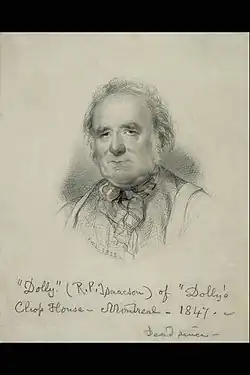 Lock left England for British North America in 1846 or 1847,[1] and settled in Montreal, then the capital of the Province of Canada, initially residing there with his uncle, Robert Philip "Dolly" Isaacson, proprietor of Dolly's Chop House. Isaacson was then a widower whose wife had died in 1822. Isaacson had preceded Lock to Canada in 1832.[10] Isaacson likely helped Lock establish a clientele while Lock was employed in his restaurant.[11]