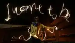 The music video was shot by director Masaki Ohkita,[4] and shot in one day on November 22, 2008.[5] The video begins showing Abe drawing spirals and patterns in the air with her finger (such as stars, or the song's name), before dawn at the Port of Kobe. Later, Abe performs the song with her band against the Kobe skyline. These two scenes are interspersed with shots of Abe singing the song in front of a wall of Marshall amplifiers.