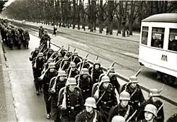 On 9 April 1920, a military style marching band, the Musikkorps, was created. It was led by Obermusikmeister Ernst Stieberitz, a well-respected composer, and became prominent throughout the city and Europe.[3]