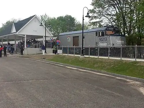 Freeport station is a passenger rail station in Freeport, Maine, which is located on Amtrak's Downeaster line. The Downeaster operates from North Station in Boston to Brunswick Maine Street Station in Brunswick, Maine, via the Portland Transportation Center in Portland, Maine. Freeport was part of a $38.3 million project to rehabilitate 30 miles (48 km) of track between Portland and Brunswick. Most of the money came from the federal government with an additional $500,000 of state money spent on platforms on Freeport and Brunswick. The first official service to the station was on November 1, 2012.[2]