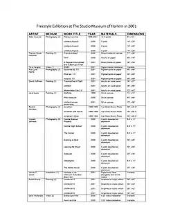 - ^ a b Byrd, Cathy. ""Is There A "Post-Black" Art? Investigating The Legacy Of The "Freestyle" Show."". Art Source. Art Papers 26.6. Retrieved 30 Oct 2014.