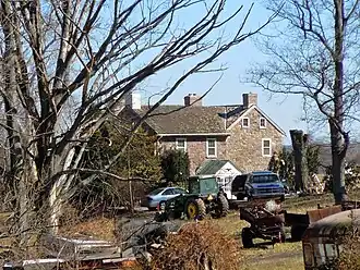 French Creek Farm, also known as The Aman Farm, is a historic farm and national historic district located in West Vincent Township, Chester County, Pennsylvania. The farm has four contributing buildings. They are a stone spring house (1795), stuccoed small barn and wagonshed (1796–97), 2+1⁄2-story stone smokehouse (1799), and the farmhouse. The farmhouse was built in three stages and is a 2+1⁄2-story, six-bay stone dwelling with a gable roof. The oldest section was built in 1804–04, with additions made in 1808 and 1812.[2]