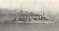 During the war 75 mm anti-aircraft guns were installed on the roofs of the ship's two forward 240 mm gun turrets.[3] During 1918, the elevation of the 240 mm guns was increased which extended their range to 18,000 meters (20,000 yd).[1]