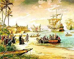 Meanwhile, a second organized attempt at French colonization took place on the Upaon-Açu Island, in Maranhão, from 1594. On September 8, 1612, led by Daniel de La Touche, the French founded the city of São Luís. After the Battle of Guaxenduba on November 19, 1614, the French presence in the region lasted until it was eradicated by Portuguese and indigenous troops in 1615.[16]
