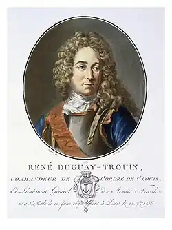 On September 12, 1711, a squadron of 17 or 18 ships, armed with 740 pieces, 10 mortars, 5,764 men and under the command of the French privateer René Duguay-Trouin, entered the Guanabara Bay bar, escaping the fire from the fortresses, which had been evacuated three days earlier, thanks to a report received by the then Governor of the Captaincy of Rio de Janeiro, Francisco de Castro Morais, that claimed the news of the French squadron's arrival was false.[20]
