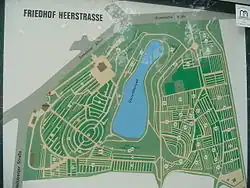 The Friedhof Heerstraße cemetery is located at Trakehnerallee 1 (Trakehner avenue No.1), district of Charlottenburg-Wilmersdorf in Berlin, Germany, to the east of the Olympiastadion. It covers an area of 149,650 square meters.