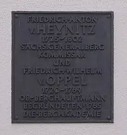 Friedrich Anton von Heynitz (14 May 1725 – 15 May 1802) was an aristocrat and cameralist in Saxony who founded the oldest mining school in the world, the Bergakademie Freiberg. He studied mining and was involved in reforming the mining and metallurgy industry in Prussia. His economic principles were of a moderate mercantilism, anti-monopolistic, and supported an enlightened absolutism.