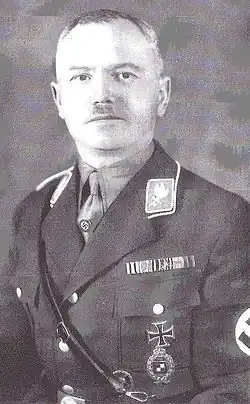Kraußer joined the Nazi Party in late 1928 (membership number 104,846). When Ernst Röhm became the SA-Stabschef in 1931, he set about recruiting other former Bavarian military officers that he knew and trusted for top level positions, and Kraußer was one such selection.[7] Kraußer entered the SA with the relatively high rank of SA-Oberführer and, from 3 November 1931 to 13 February 1932, he led the SA-Gruppe Hochland in Munich, in command of all SA forces in Upper Bavaria.[8] Promoted to SA-Gruppenführer on 15 March 1932, he was chief of Department I (Organization) of the Supreme SA Leadership (OSAF) from 1 July 1932. Part of his function was as chief of aviation, responsible for the air arms of both the SA and its subordinate component, the Schutzstaffel (SS).[9]