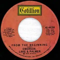 "From the Beginning" is a song written by Greg Lake and performed by the progressive rock trio Emerson, Lake & Palmer. It was released on their 1972 album Trilogy. It hit #39 in the United States and was their highest-charting single there.[1]