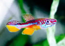 Fundulopanchax avichang[2] is a species of African killifish that mainly inhabits small temporary pools of the Ecucu River drainage systems. The species is endemic to Equatorial Guinea.[3] Adult fish reach a maximum length of approximately 2.6 centimetres (1.0 inch).[4] Breeding pairs of the species most often lay their eggs over the bottom, but occasionally also among the roots of free-floating aquatic plants. Pairs stay close for some time, with just a few eggs being produced each day.
