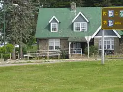 The park headquarters' construction started at a particular site, at the expense of the site's natural and cultural heritage.[14] A nine-hole golf course was designed by Stanley Thompson and constructed alongside the road leading to Point Wolfe at a cost of $100,000. Additionally, a swimming pool was established near Alma West's beach.[15] To provide accommodation within the park, designated campgrounds were developed, designed to accommodate tents and trailers. Additionally, 29 cottages were constructed in a location overlooking the park's golf course.[16] One of the more significant expenses was that of the park superintendent's residence. Initially authorized at a price of $12,000, the project eventually incurred a total cost of $30,000 by the time it was finished, a price equivalent to the value of three to four farms in Alma.[17] The park headquarters area also saw the installation of the New Brunswick School of Arts and Crafts,[16] but it later disappeared.[18]