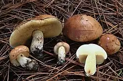 - ^ a b c Wang, Y.; Sinclair, L.; Hall, I. R.; Cole, A. L. J. (1995). "Boletus edulis sensu lato: A new record for New Zealand". New Zealand Journal of Crop and Horticultural Science. 23 (2): 227–231. Bibcode:1995NZJCH..23..227W. doi:10.1080/01140671.1995.9513892. ISSN 0114-0671.