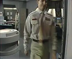 When an explosion rocks through the corridors, Rimmer explains to Lister that he just saw a "future echo" of him dying in the drive room when working on the navicomp. Lister suspects that this will happen when Cat breaks a tooth on one of the robotic goldfish in his quarters and attempts to prevent this. However, Lister inadvertently knocks the tooth out while trying to change the future, whereupon he opts to face his destiny and fix the drive room's navicomp when it starts malfunctioning. When he manages to repair it without incident, Rimmer question what he had actually seen.[8] Returning to their quarters, they soon encounter another "future echo" consisting of an elderly Lister who explains that Rimmer had actually seen the death of one of his twin sons. Before he disappears, he tells the pair to head to the medical unit with a camera.