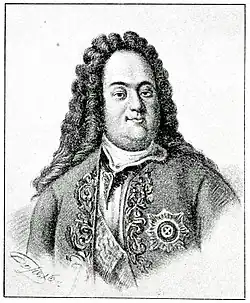 Count Fyodor Alexeyevich Golovin (Russian: Фёдор Алексеевич Головин; 1650 – 10 Aug [O.S. 30 July] 1706) was a Russian statesman, diplomat, and military leader. During the reign of Peter the Great, Golovin served as foreign minister from 1699–1706, and became the first chancellor of Russia. In addition to his political roles, he held the positions of field marshal and general admiral, mostly holding the titles nominally and acting more in the capacity of a military administrator.[1][2]
