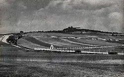 After the First World War, a plebiscite was held on 20 March 1921 under the terms of the Treaty of Versailles to determine whether the parts of Silesia which had belonged to Prussia and thus to the German Empire would remain German or join the reconstituted Poland. In the parish of Annaberg, as in most of Upper Silesia, a majority voted for Germany, but the local administrative district (Landkreis Groß Strehlitz) was one of the areas where the majority favoured reunion with Poland. In early May the Third Silesian Uprising began, with Polish units of the Wawelberg Group, against the wishes of the Polish government, seeking to unite with Poland those areas that had voted for it. On 4 May they captured the Annaberg, which in addition to the cultural importance of the monastery for German Silesians, had strategic importance since it dominates the Oder valley,[13] from the legally limited forces of the German army. On 21–23 May, in the Battle of Annaberg, unofficial German forces of the Upper Silesian Selbstschutz and the Bavarian Freikorps Oberland, under the command of Generalleutnant Bernhard von Hülsen, retook part of the hill.[14][15] There were heavy losses on both sides and fighting took place in several neighbouring villages. Several participants on the German side were later prominent in the Nazi regime.