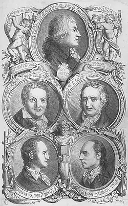 On Sunday, 18 September 1774, Klopstock passed through the city and paid them a visit. He had intended to leave early the next morning, but transportation was difficult to find, and to their delight he spent nearly the whole of the Monday in their company.[2]
