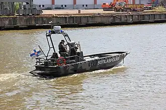 The G class, or "G-boat" also known as the Marine Alutech Watercat M8 landing craft (Finnish: G-vene, Swedish: Gruppbåt) is a type of vessel in use by the Finnish Navy and the Swedish Navy. The G-boat was originally designed for the Swedish Navy which ordered about 100 of them. It is primarily used for amphibious landings by, and transportation of, marines. It has a very low draught (approximately 20 cm) at high speeds which makes it ideal for amphibious assault even in shallow waters. It has a cargo capacity of 8 men or one metric ton.
