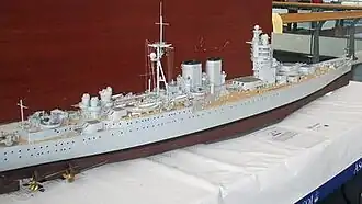 6. ^ This arrangement of the main armament was later used in the French Navy's Dunkerque- and Richelieu class. As both French designs had only two turrets these were given as wide a separation as allowed by the other design constraints.