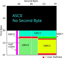 - ^ For a finer division of this range, see GBK (character encoding) § Encoding.