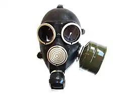The GP-7 gas mask is a civilian gas mask that was produced by the Soviet Union during the Cold War era. The mask was designed to provide protection to civilians against nuclear, biological, and chemical (NBC)[1] agents during the threat of the Cold War.[2] It is distinguished from its military counterpart, the PMK, which was intended to be used exclusively for military purposes as opposed to the GP-7 which was designed solely for civil defense.[3]