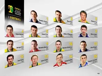 The GPA Gaelic Team of the Year known for sponsorship reason as The Opel Gaelic Team of the Year awards were an awards ceremony to honour the performances of Gaelic Athletic Association players. The awards were judged and awarded by the Gaelic Players Association. In 2011 the GAA and GPA announced that their respective annual player awards schemes were to merge under the sponsorship of Opel.[1] The first merged awards were given out in 2011.[2]