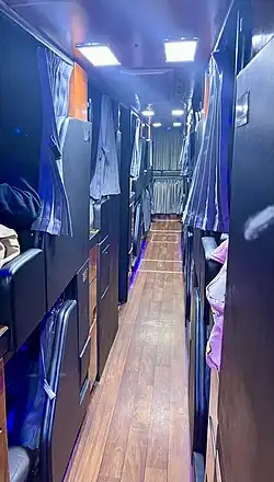 - Sleeper Class: Features 35 reclining double-deck bunk beds in 1x1x1 configuration, 4 TV, with onboard restroom. The first company to introduce Sleeper bus in the Philippines.