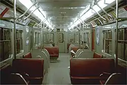 As the only Toronto subway cars to be manufactured outside of Canada, its design was mainly influenced by the Q38 and R stocks of the London Underground.[2] Since the TTC's original concept for the subway system foresaw the use of rapid transit cars derived from the Presidents' Conference Committee (PCC) design of its streetcar network, the cars were also equipped with bulls-eye incandescent lighting similar to that of a PCC,[3] and a small operator's cabin located in the front left corner of each car. To this end, it was influenced by the 6000-series cars used on the Chicago "L", felt through the work of DeLeuw, Cather & Co. of Chicago, whom the TTC contracted as a consultant for the rapid transit project.