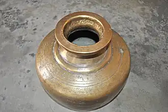 Gagar (Punjabi: ਗਾਗਰ, pronounced: gāger), a metal pitcher used to store water in earlier days, is also used as a musical instrument in number of Punjabi folk songs and dances. It is played with both hands with rings worn on fingers. It is closely associated with the other music instrument, Gharha, which is an earthen pitcher.[1] Gagar is traditionally used by milk venders as milk container also in Majha region (Amritsar, Gurdaspur and Tarantaran districts) of Punjab.